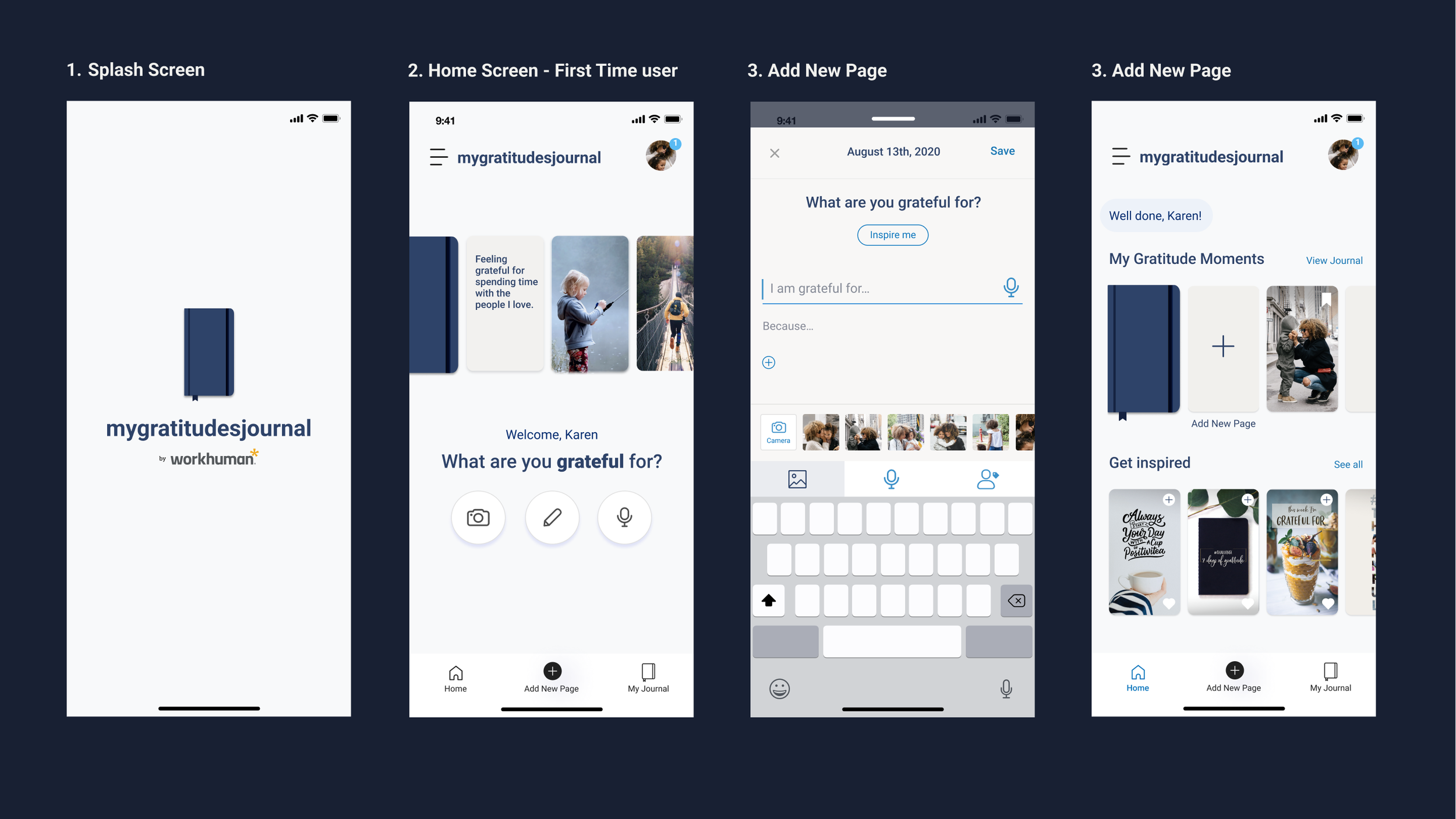 As a Senior UX/UI Designer, I played a pivotal role in the conceptualisation and design of the Gratitudes Journal, a new product vertical within the Workhuman Recognition System.